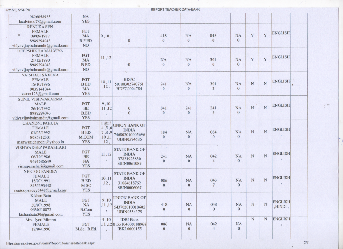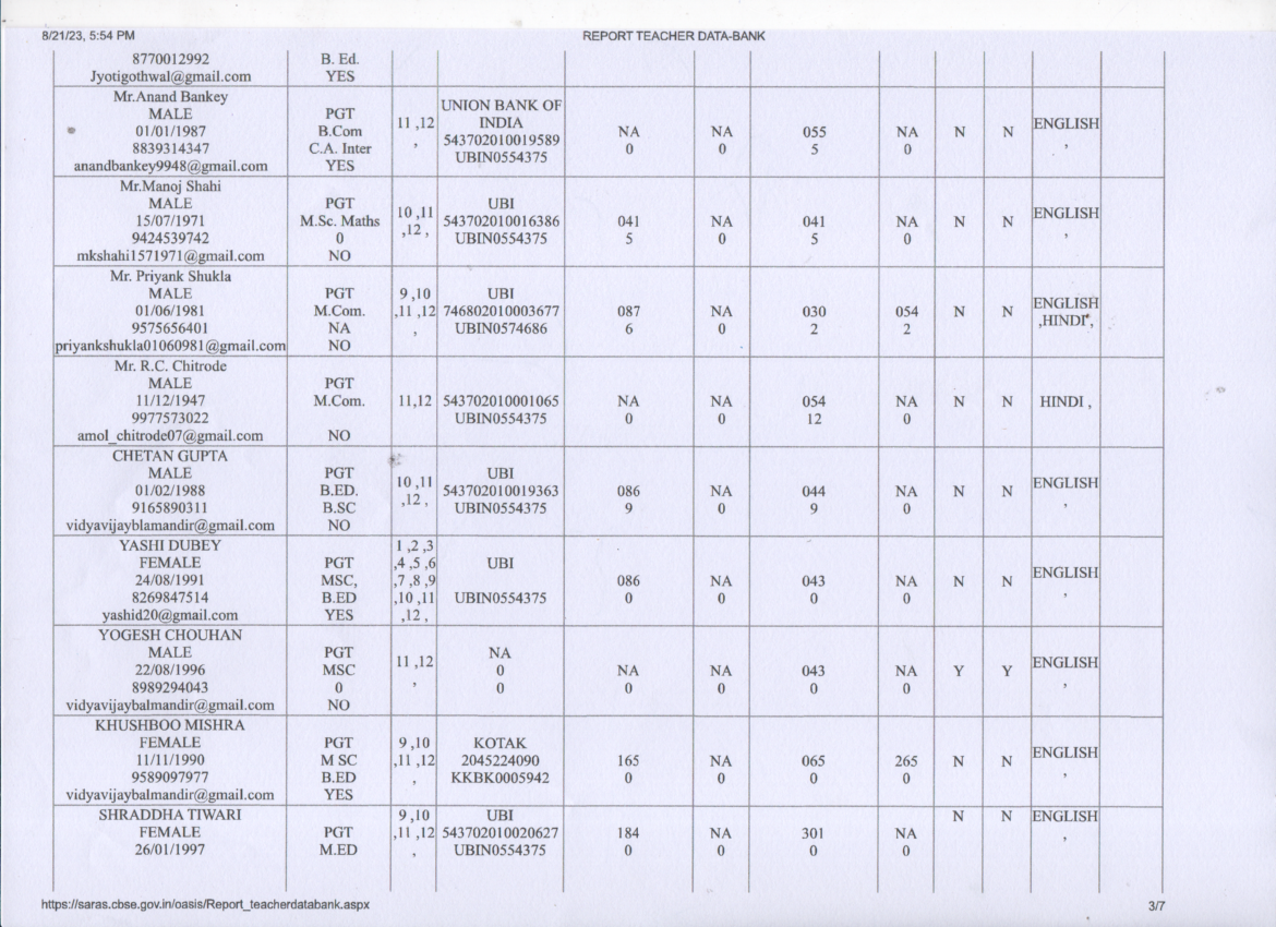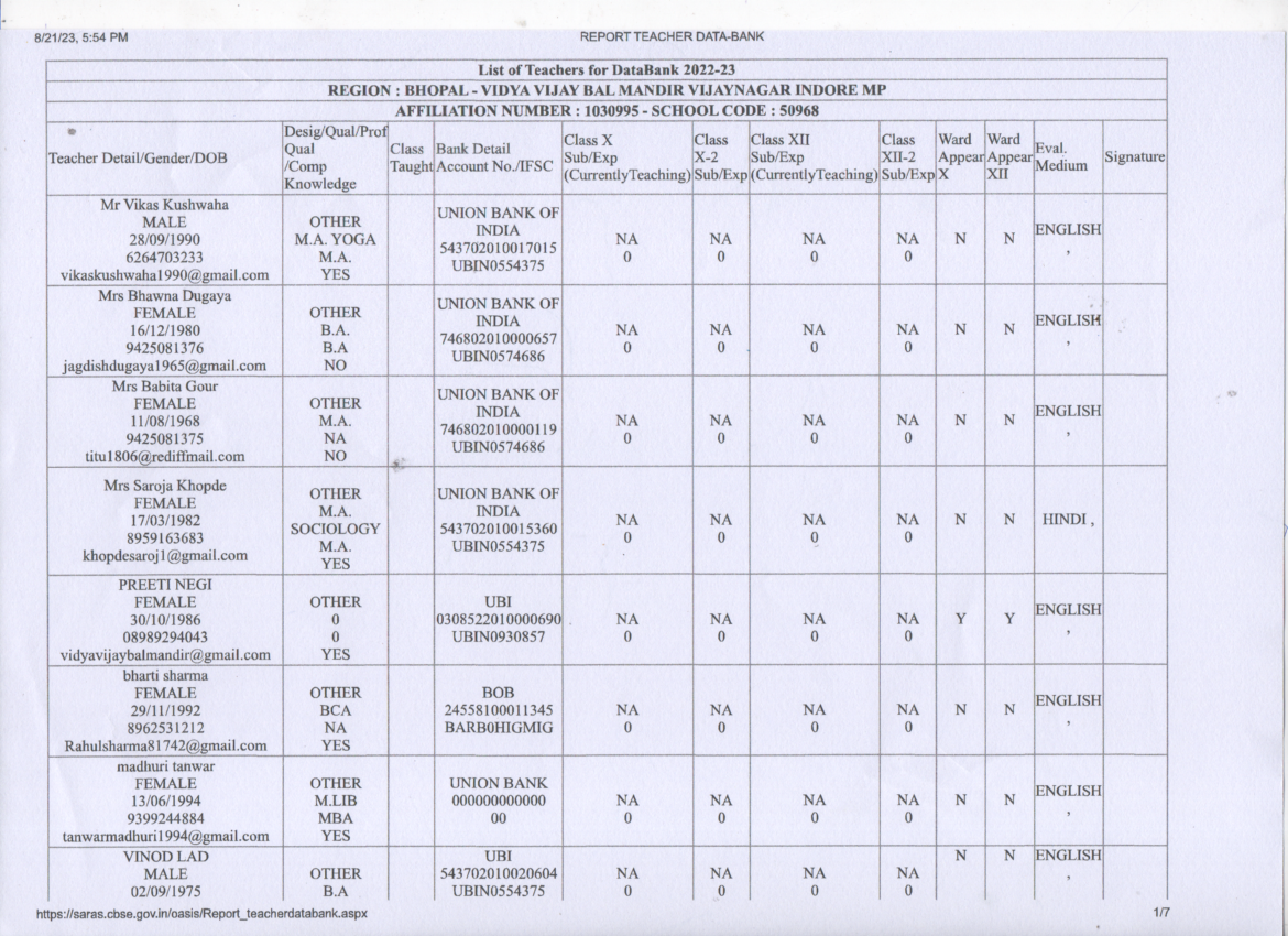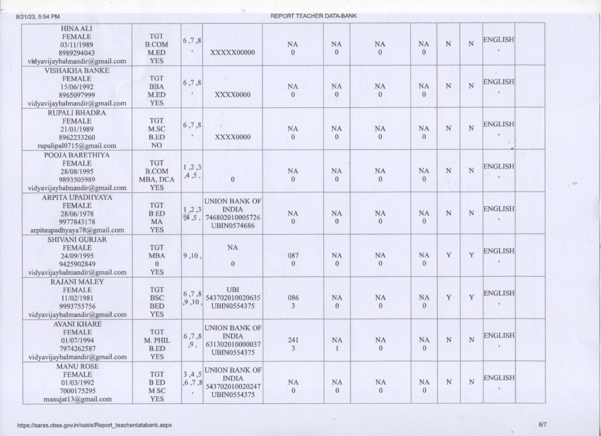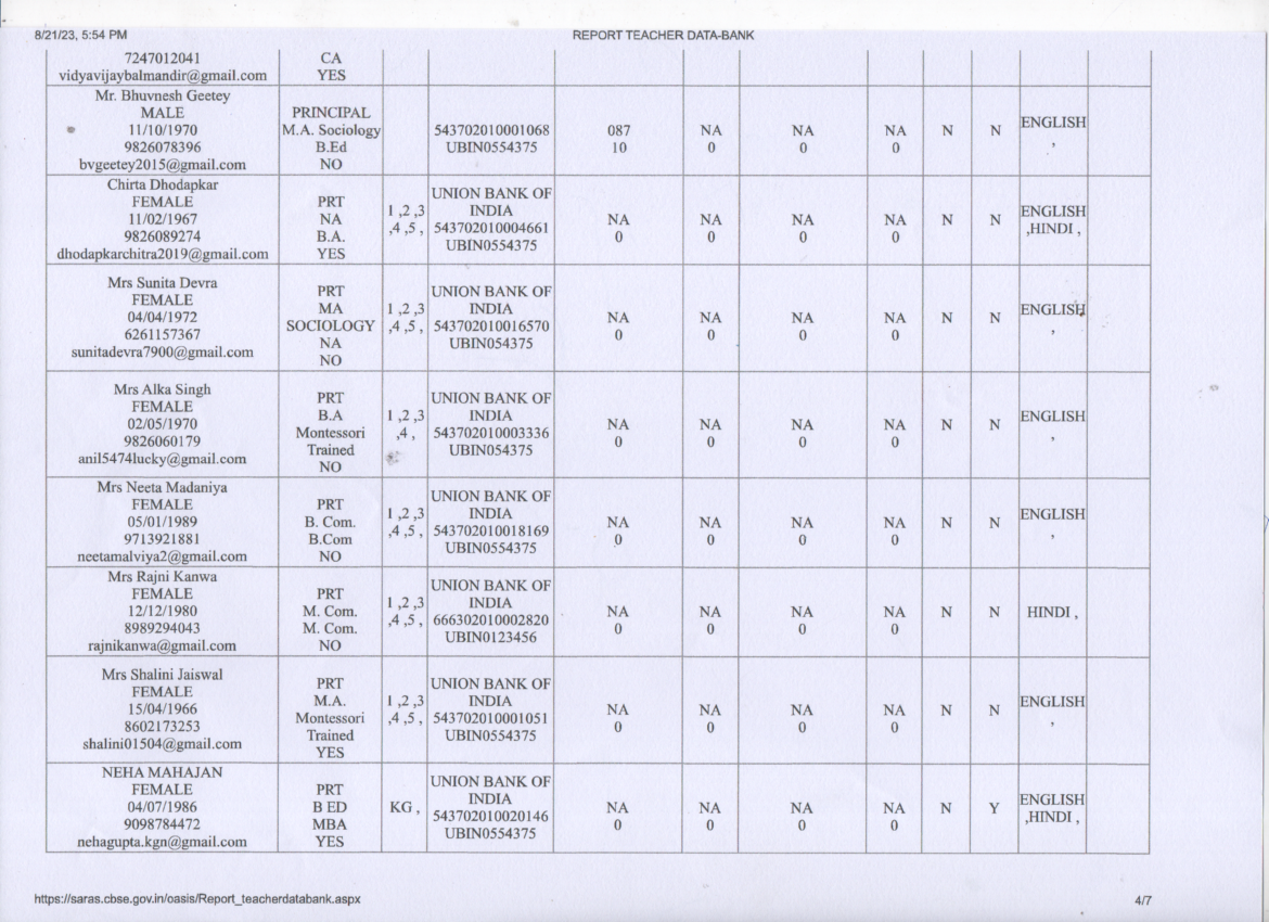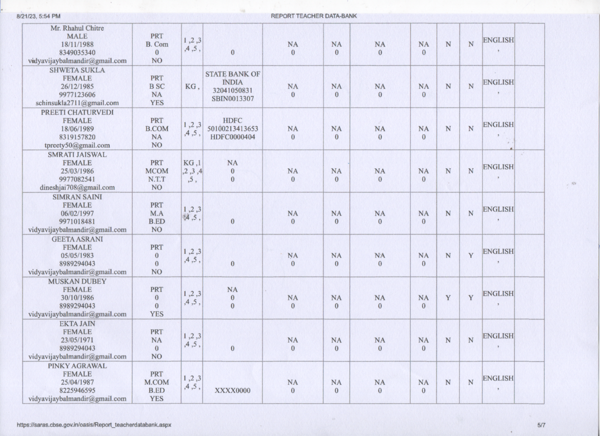 Staff Details